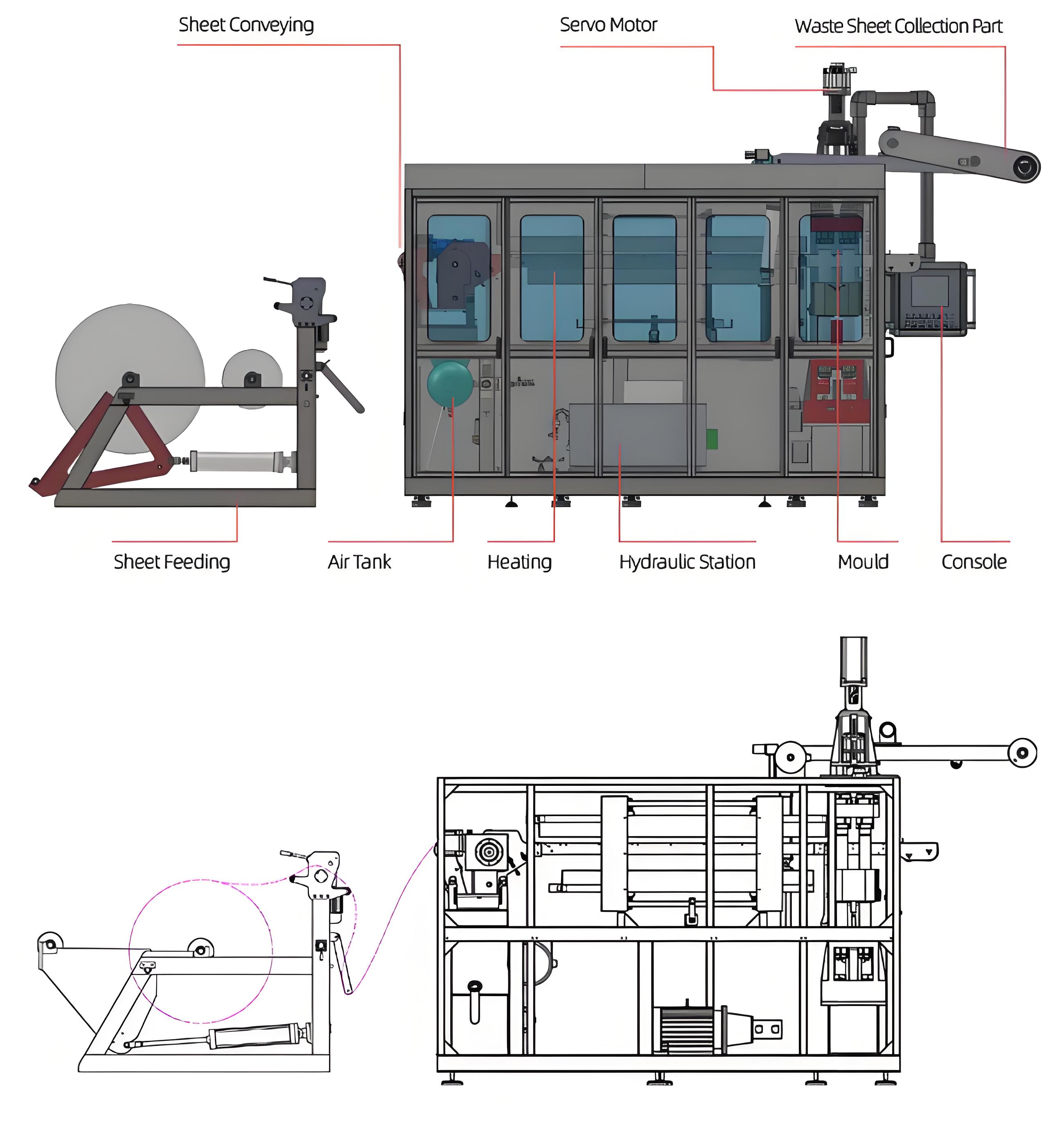 Applicable Sheet Type | PP、PS、PET、PVC、PLA, With calcium, rice husk, bamboo, talcium, starch, straw, bamboo and other plant fiber | |