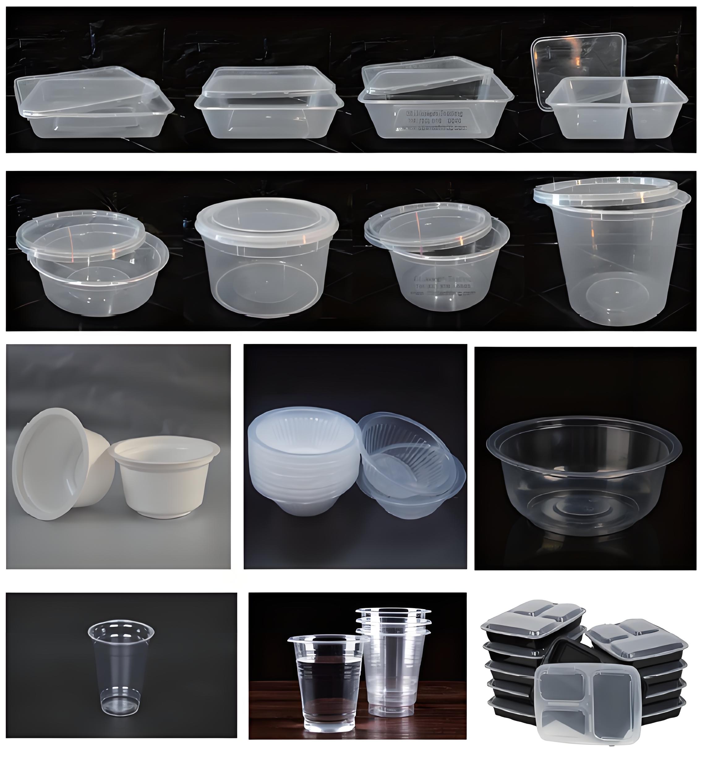 1. Muti Application:Disposable Cups, Glasses, Jelly Cups, Food Container, Lid, Food Bowl, Food Plate, Food Tray, Market Tray etc
